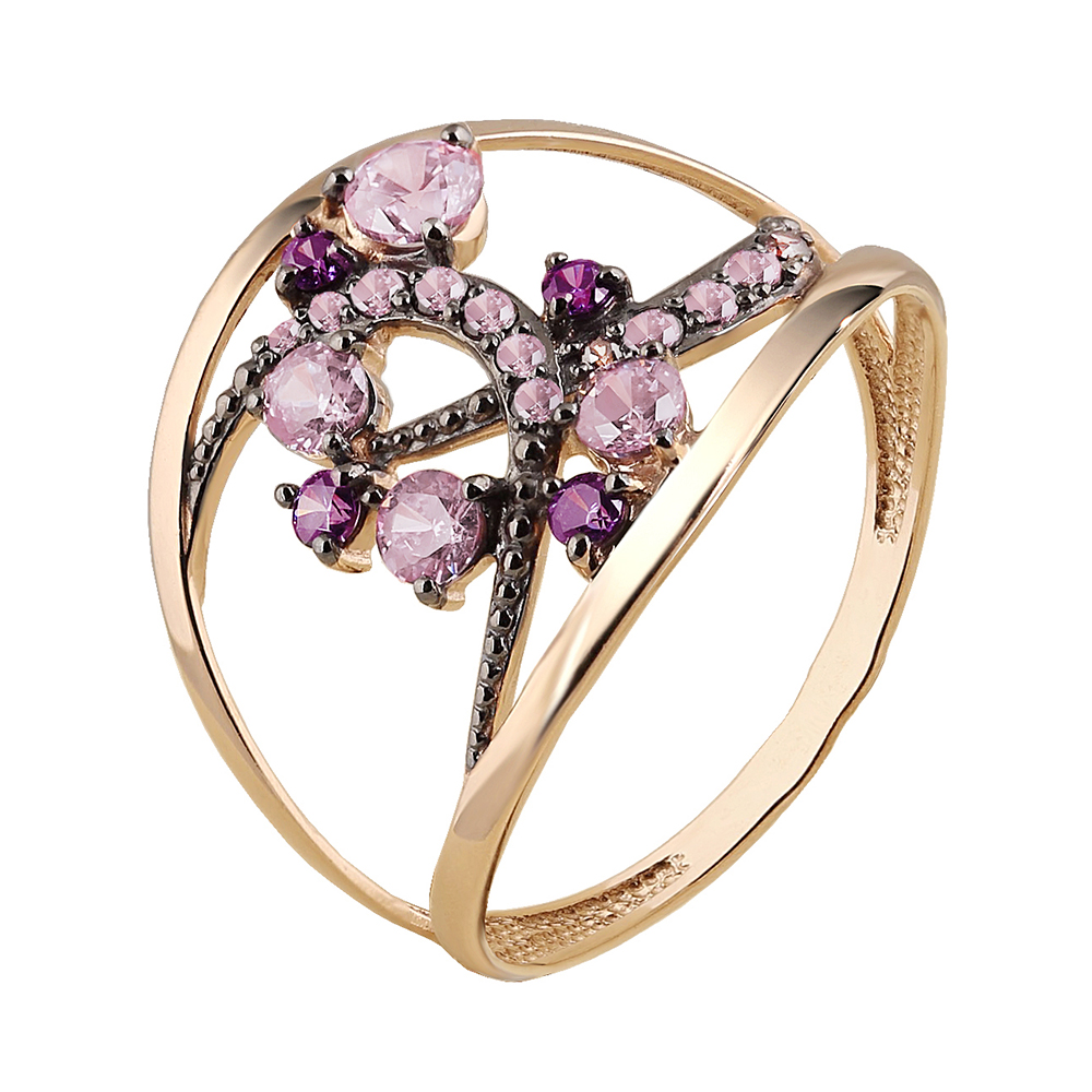 Золотое кольцо с фианитом, артикул 184405 по цене 50218 руб. в наличии в салонах Город Золотой. Изделие имеет внешний вид "Классика/узор", красный цвет, весом 1,55 грамм.