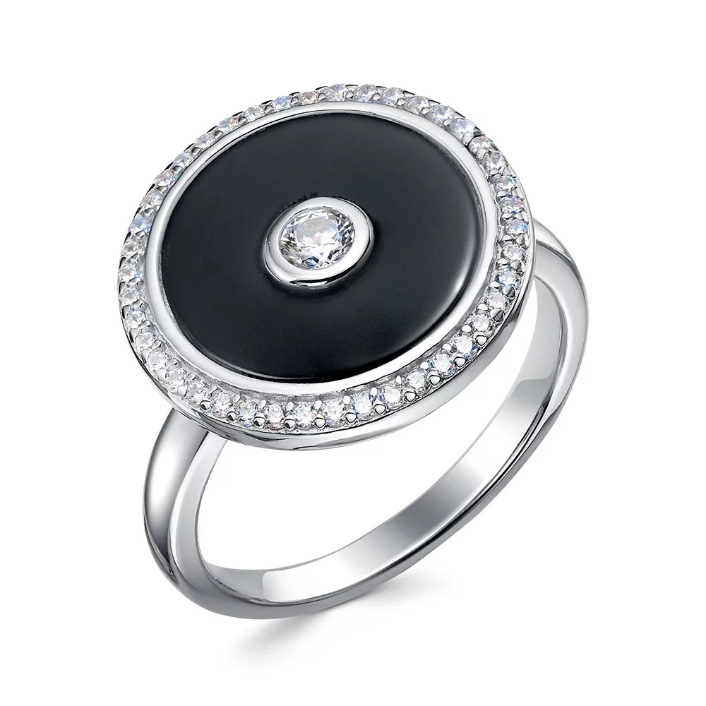 Серебряное кольцо с ониксом, артикул 183965 по цене 9490 руб. в наличии в салонах Город Золотой. Изделие имеет внешний вид "Классика/узор", белый цвет, весом 5,61 грамм.