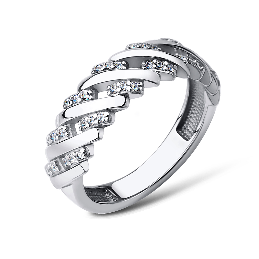 Серебряное кольцо с фианитом, артикул 184837 по цене 9360 руб. в наличии в салонах Город Золотой. Изделие имеет внешний вид "Классика/узор", белый цвет, весом 3,08 грамм.