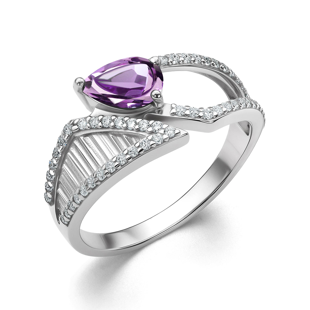 Серебряное кольцо с аметистом, артикул 184896 по цене 6990 руб. в наличии в салонах Город Золотой. Изделие имеет внешний вид "Классика/узор", белый цвет, весом 2,42 грамм.