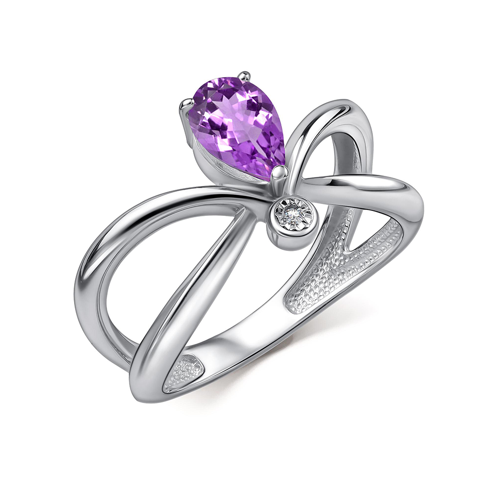Серебряное кольцо с аметистом, артикул 184908 по цене 9430 руб. в наличии в салонах Город Золотой. Изделие имеет внешний вид "Классика/узор", белый цвет, весом 3,4 грамм.
