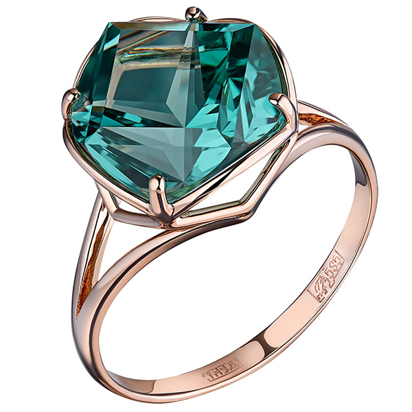 Зеленый синтетический аквамарин добавляет кольцу неповторимой игры цветов и придает ему особую очаровательность. Бриллиантовая огранка акцентирует внимание на красоте этого камня и сиянии, которое он испускает при попадании света.