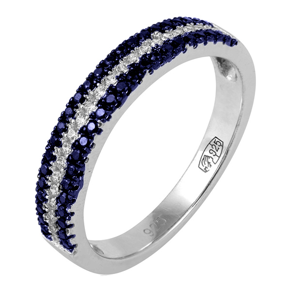 Колечко украшено синими корундами, которые придают ему изысканность и роскошный вид. Кроме того, кольцо сочетает в себе изумрудный блеск с квадратными кубическими циркониями, которые добавляют ему сияние и выразительность.