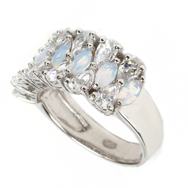 Серебряное кольцо 925 пробы с лунными камнями и цирконием от производителя ЮКОН Москва - это изящное и стильное украшение, которое привнесет неповторимый шарм в любой образ.
