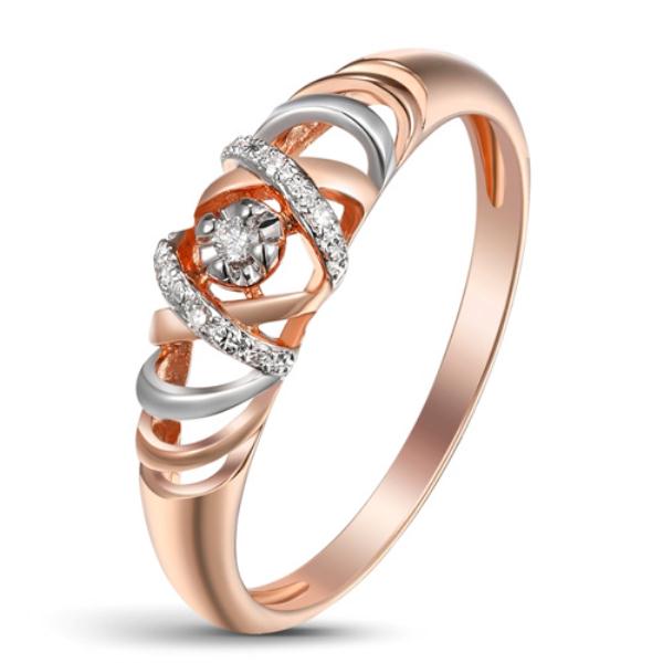 Кольцо из красного золота 585 пробы с бриллиантом, артикул 121715 по цене 21245 руб. в наличии в салонах Город Золотой. Изделие имеет внешний вид "Классика/узор", красный цвет, весом 1,75 грамм.
