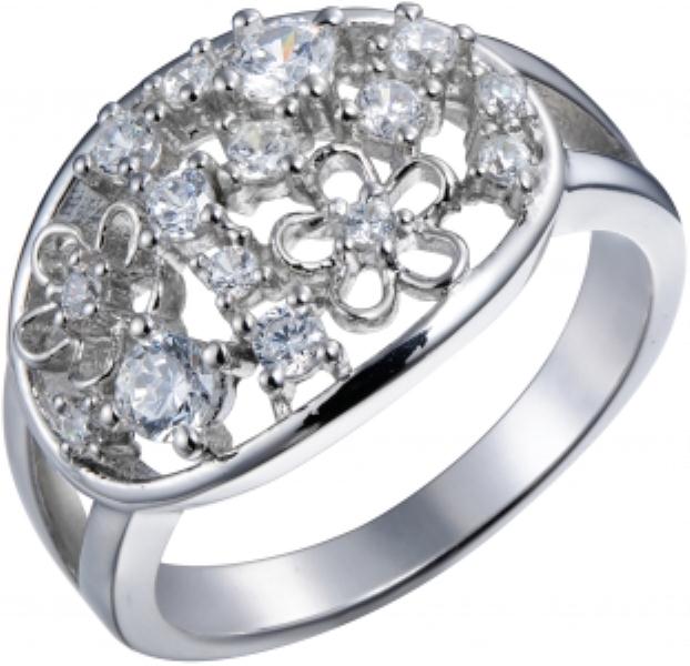Серебряное кольцо с фианитом, артикул 129717 по цене 1590 руб. в наличии в салонах Город Золотой. Изделие имеет внешний вид "Классика/узор", белый цвет, весом 4,1 грамм.