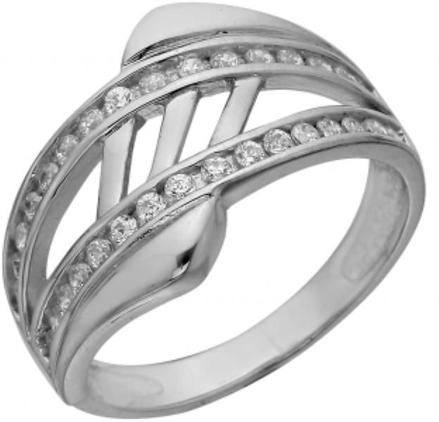 Серебряное кольцо с фианитом, артикул 129734 по цене 1390 руб. в наличии в салонах Город Золотой. Изделие имеет внешний вид "Классика/узор", белый цвет, весом 3,6 грамм.