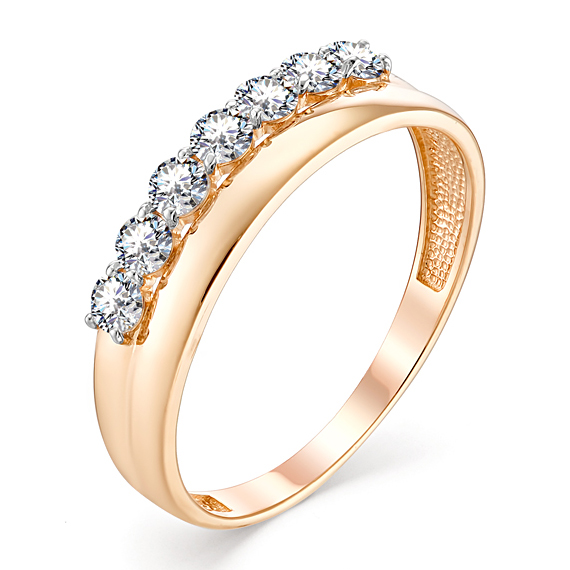 Кольцо украшено яркими фианитами, которые воссоздают великолепный блеск алмазов, придавая украшению неповторимый шик. Фианиты идеально совпадают по размеру и огранке, создавая гармоничное и эффектное цветовое сочетание с золотым основанием.