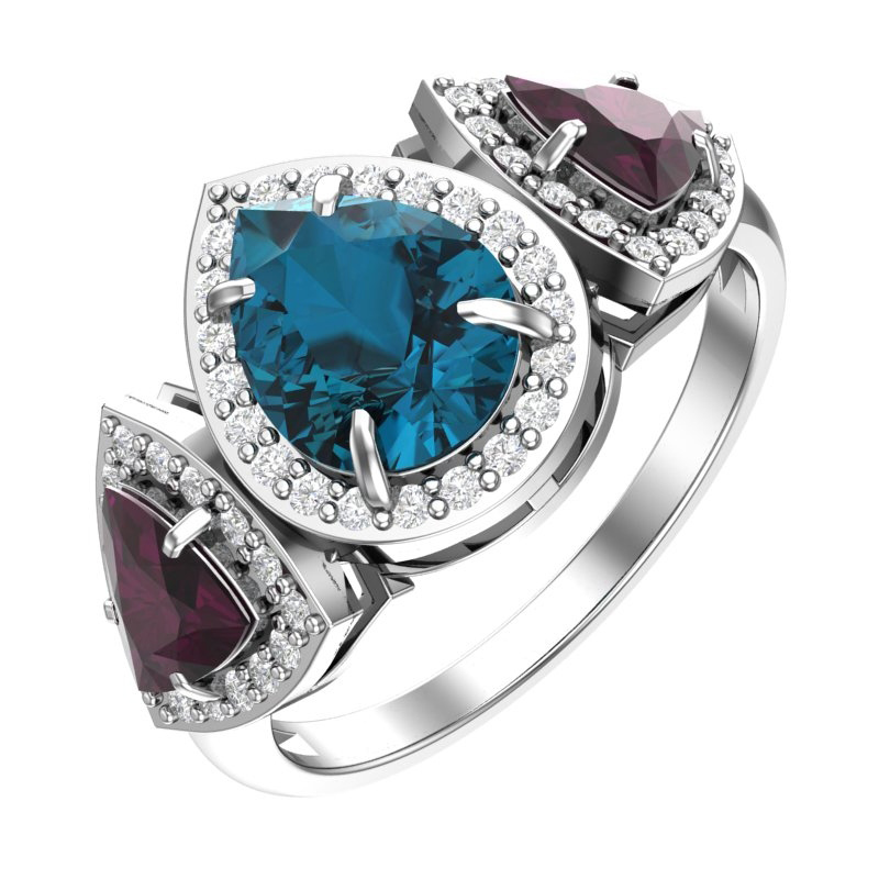 Кольцо украшено массивными синтетическими кварцами и блестящими фианитами, которые подчеркивают его элегантность. Каждый камень аккуратно закреплен в металлической оправе, что обеспечивает его надежную фиксацию и долговечность.