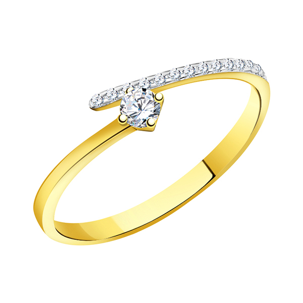 Кольцо выполнено из высококачественного желтого золота 585 пробы, что гарантирует его прочность и долговечность. Россыпь бриллиантовых фианитов, каждый из которых прошел тщательный отбор, придают украшению неповторимое сияние и блеск.