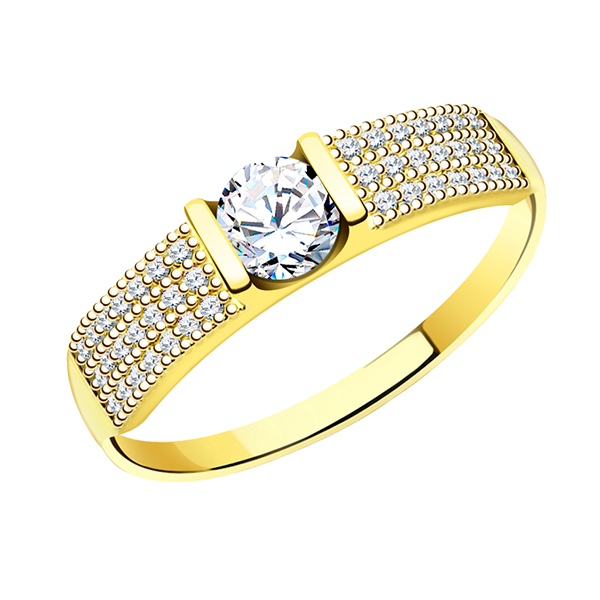 Кольцо из желтого золота с фианитом, артикул 142300 по цене 48398 руб. в наличии в салонах Город Золотой. Изделие имеет внешний вид "Каст", желтый цвет, весом 2,86 грамм.