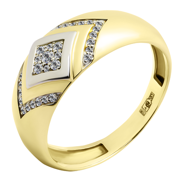 Кольцо выполнено из первоклассного желтого золота 585 пробы, что гарантирует его высокую прочность и блеск на протяжении многих лет. Бриллианты, внедренные в кольцо, добавляют ему блеск и утонченность.