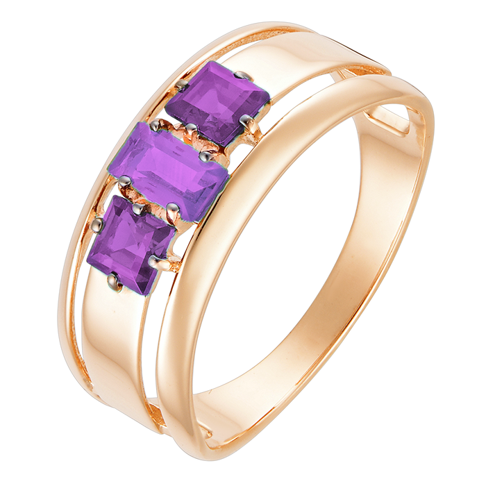 Используются аметисты, которые придают кольцу неповторимый и изящный вид. Аметисты, благодаря своей яркой фиолетовой окраске, сочетаются с золотом настолько гармонично, что создают поистине захватывающий эффект.