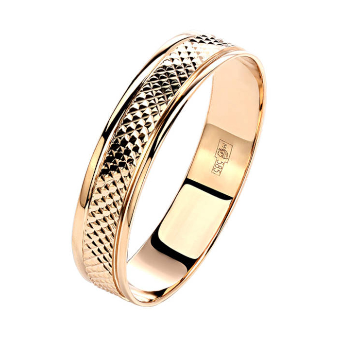 Золотое обручальное кольцо , артикул 169976 по цене 11337 руб. в наличии в салонах Город Золотой. Изделие имеет внешний вид "АЛ147", красный цвет, весом 0,67 грамм.