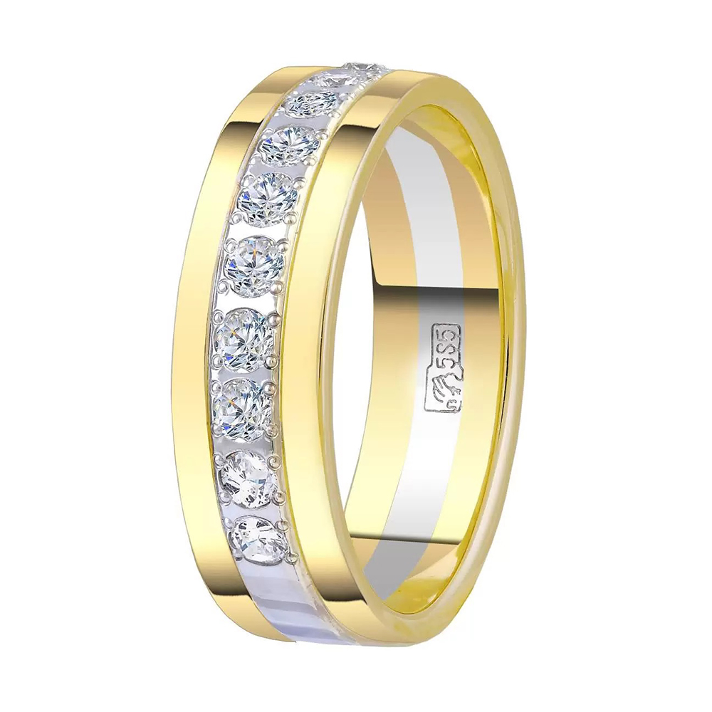 Золотое обручальное кольцо с бриллиантом, артикул 181908 по цене 198968 руб. в наличии в салонах Город Золотой. Изделие имеет внешний вид "КДКЮ517жб", желто-белый цвет, весом 4,3 грамм.