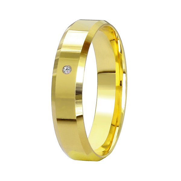 Кольцо обручальное из желтого золота с бриллиантом, артикул 181912 по цене 125500 руб. в наличии в салонах Город Золотой. Изделие имеет внешний вид "КДКЮ722-Ж", желтый цвет, весом 3,82 грамм.
