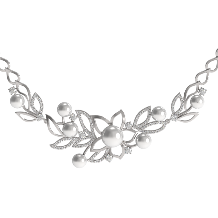 Серебряное колье с жемчугом, артикул 154777 по цене 20490 руб. в наличии в салонах Город Золотой. Изделие имеет внешний вид "Классика/узор", белый цвет, весом 16,14 грамм.