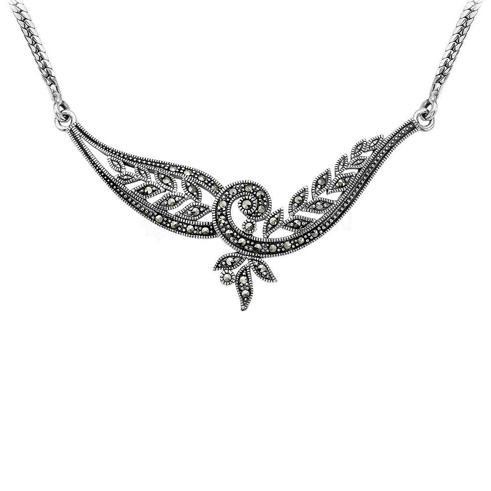 Серебряное колье с марказитом, артикул 148249 по цене 15190 руб. в наличии в салонах Город Золотой. Изделие имеет внешний вид "Классика/узор", белый цвет, весом 11,22 грамм.