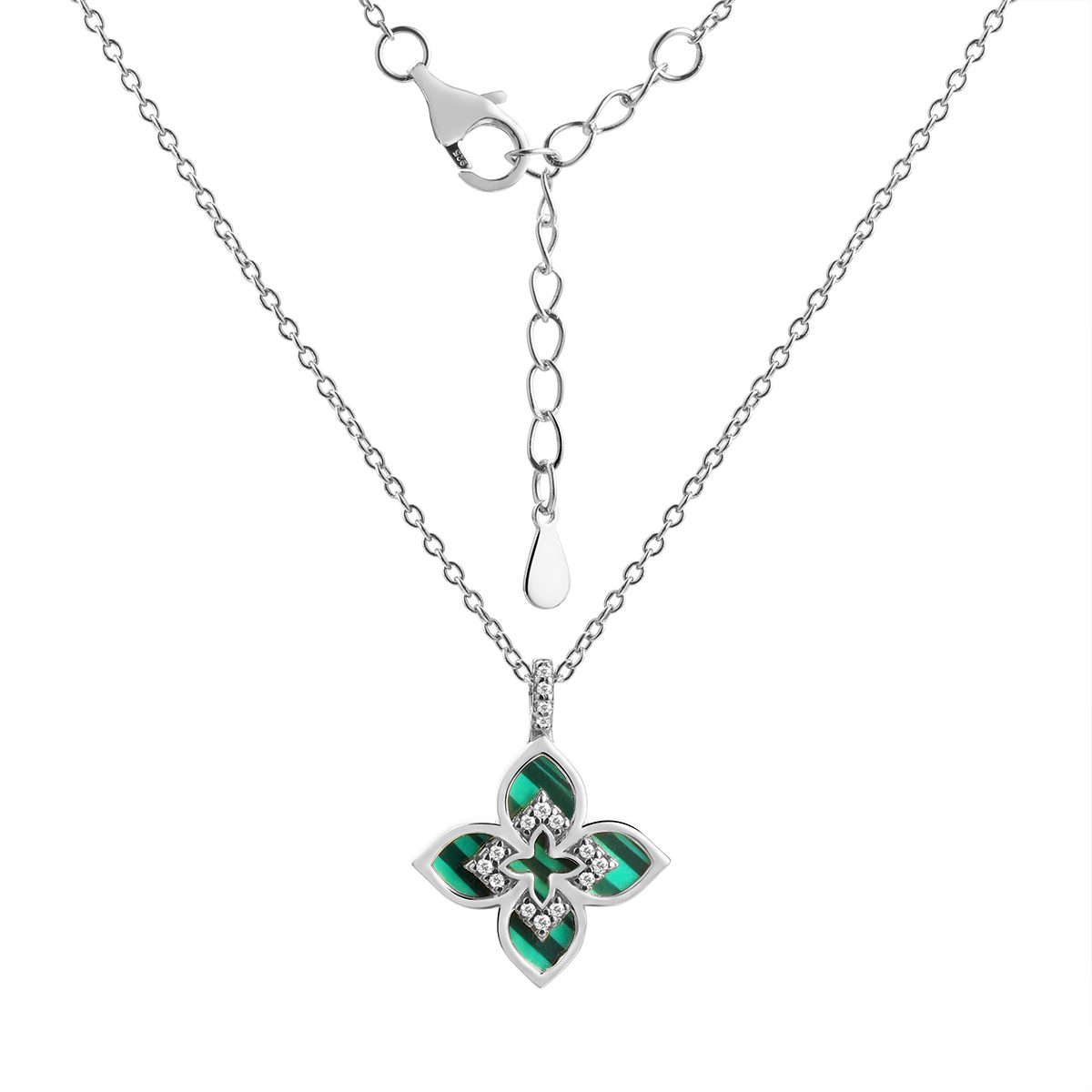 Серебряное колье с малахитом, артикул 175403 по цене 5190 руб. в наличии в салонах Город Золотой. Изделие имеет внешний вид "С подвесом", белый цвет, весом 3,06 грамм.