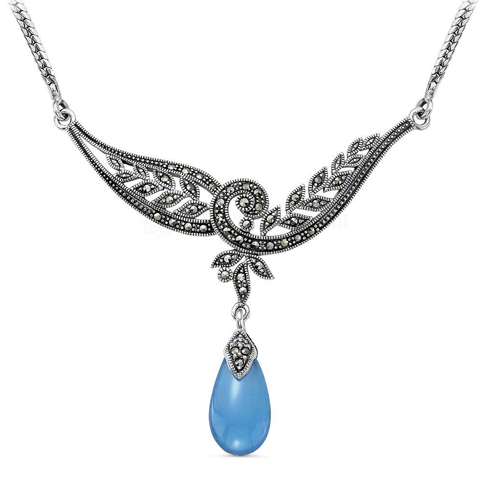 Серебряное колье с бирюзой, артикул 183295 по цене 20190 руб. в наличии в салонах Город Золотой. Изделие имеет внешний вид "С подвесом", белый цвет, весом 12,89 грамм.