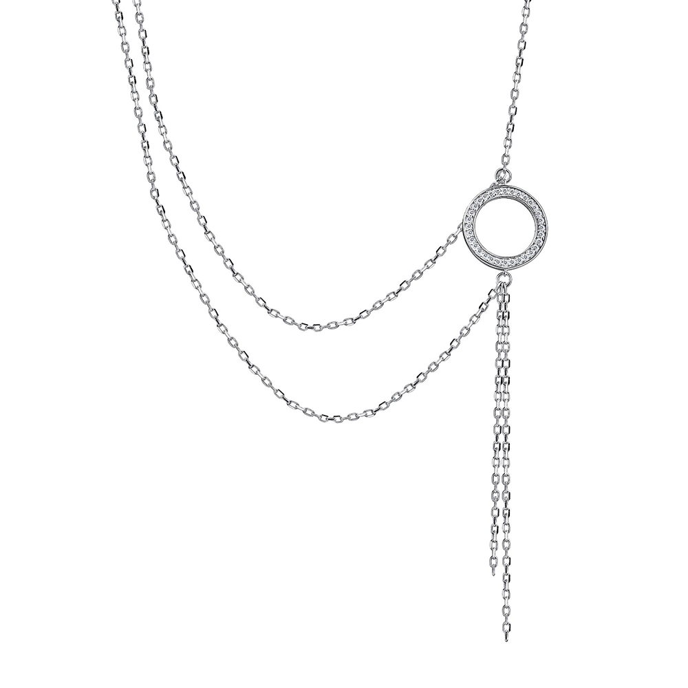 Серебряное колье с фианитом, артикул 185049 по цене 10790 руб. в наличии в салонах Город Золотой. Изделие имеет внешний вид "С подвесом", белый цвет, весом 3,59 грамм.