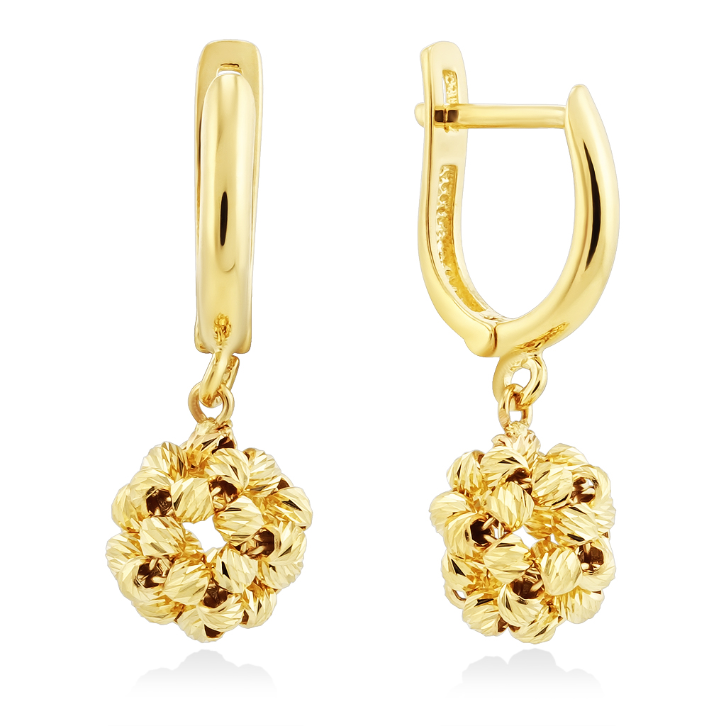 Итальянские серьги с подвесным элементом выполнены из желтого золота 585 пробы.