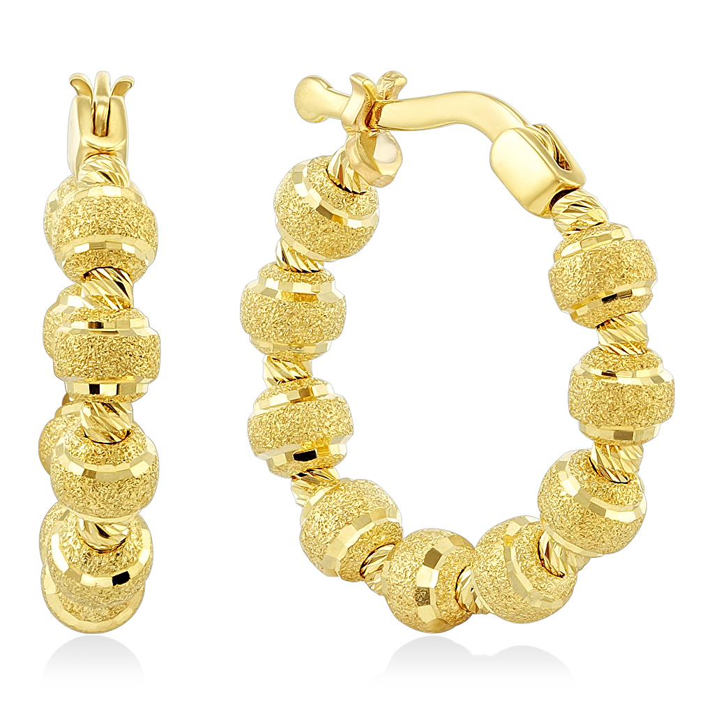 Серьги конго выполнены из желтого золота 585 пробы. Они состоят из шариков разного размера с контрастной алмазной огранкой, которая одновременно придает яркий искрящийся блеск и благородную матовость. Такая обработка украшения привлекает внимание и подчеркивает его особенность. Диаметр серьги составляет 21 мм, диаметр шариков 1 и 3 мм. Серьги из золота 585 пробы украсят ваш повседневный и праздничный образ. В пару к серьгам рекомендуем приобрести гарнитур колье, кольцо или браслет.