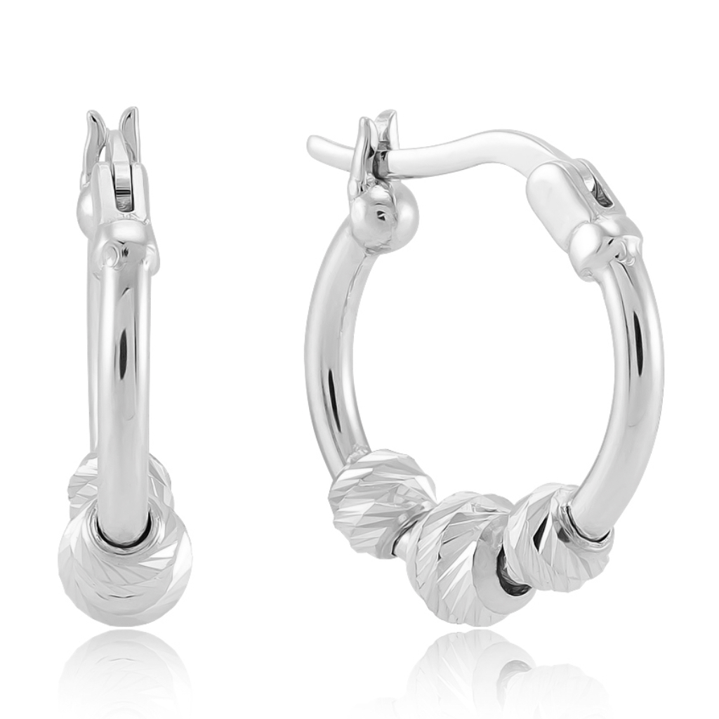 Они обработаны блестящей алмазной огранкой , вращаются вокруг своей оси и ярко сверкают на свету. Толщина серьги 1,5 мм, диаметр серьги 16 мм, рабочая зона штифта 5 мм.