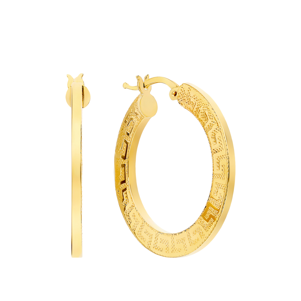 Серьги конго от Mostar Jewellery выполнены из желтого золота 585 пробы и имеют следующие размеры: Диаметр: 25мм.,ширина:4 мм., толщина:1.5мм.
