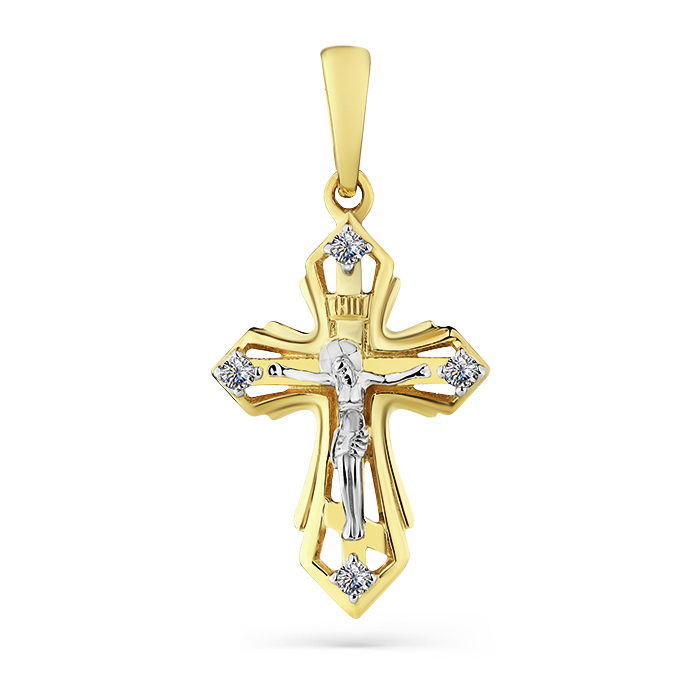 Крест из желтого золота с фианитом, артикул 153662 по цене 19460 руб. в наличии в салонах Город Золотой. Изделие имеет внешний вид "Фигурный", желтый цвет, весом 1,15 грамм.