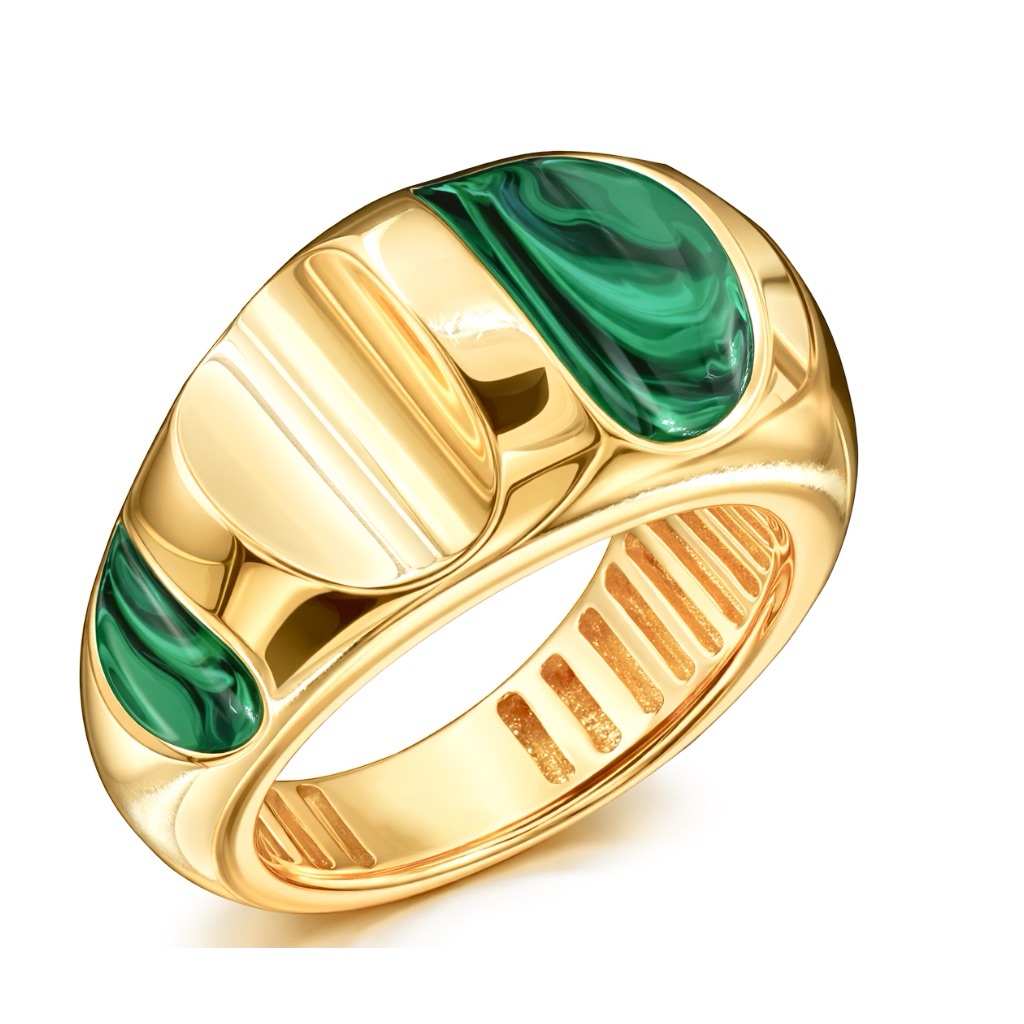 Зеркальная поверхность частично покрыта яркой цветной эмалью, что придает кольцу изысканный шарм и акцентирует внимание окружающих.