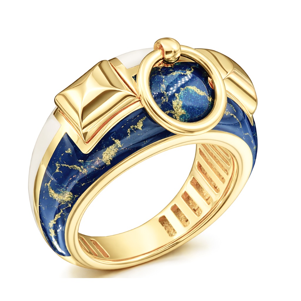 Объемная модель украшена декоративными накладными элементами. Поверхность покрыта яркой разноцветной эмалью, что придает кольцу изысканный шарм и акцентирует внимание окружающих.