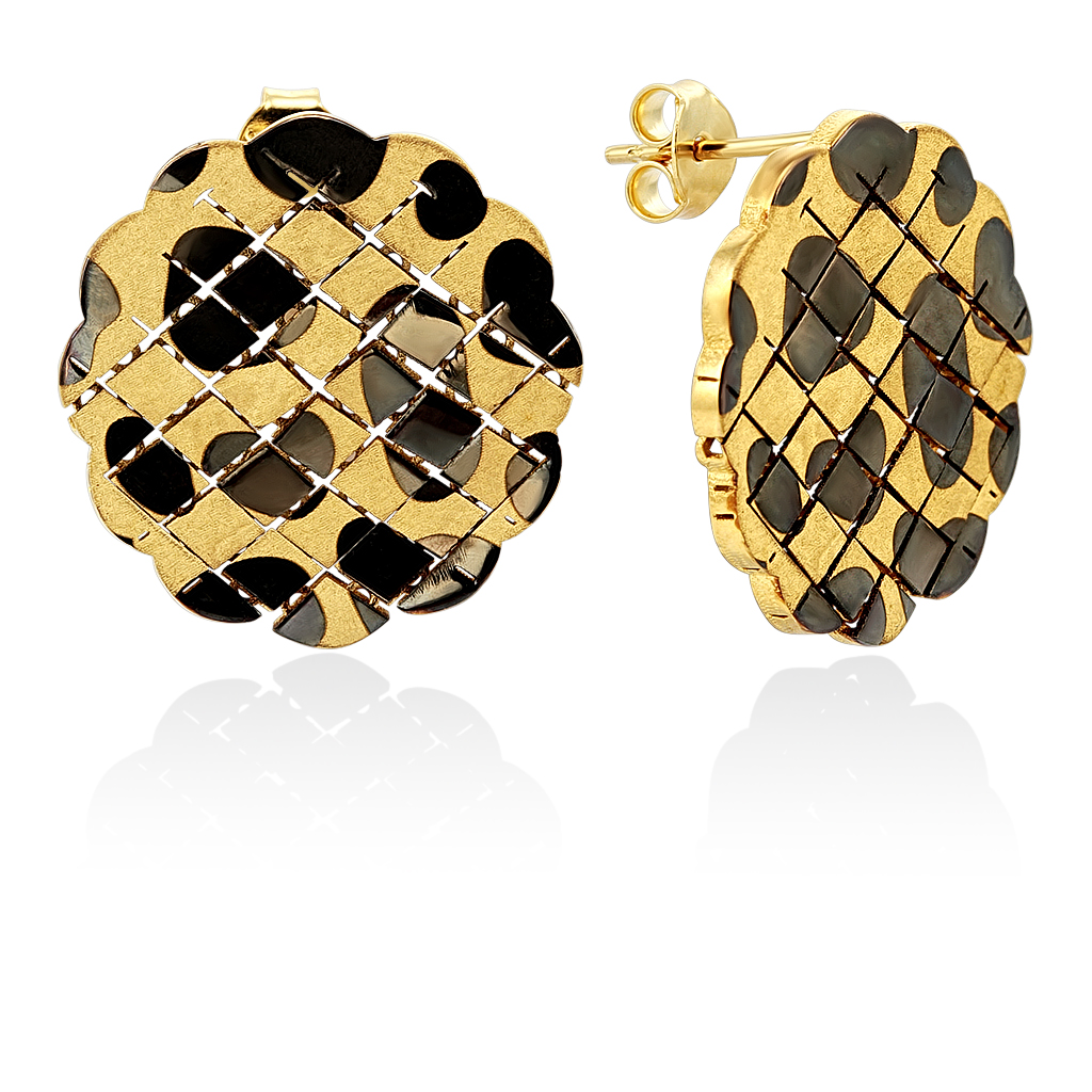 Матовая поверхность покрыта темным блестящим родием, создавая уникальный леопардовый орнамент. Красивые и стильные серьги на пусетном замке коллекции Flex станут элегантным дополнением Вашего офисного, классического, делового или молодежного стиля, украсит Ваш свадебный образ.
