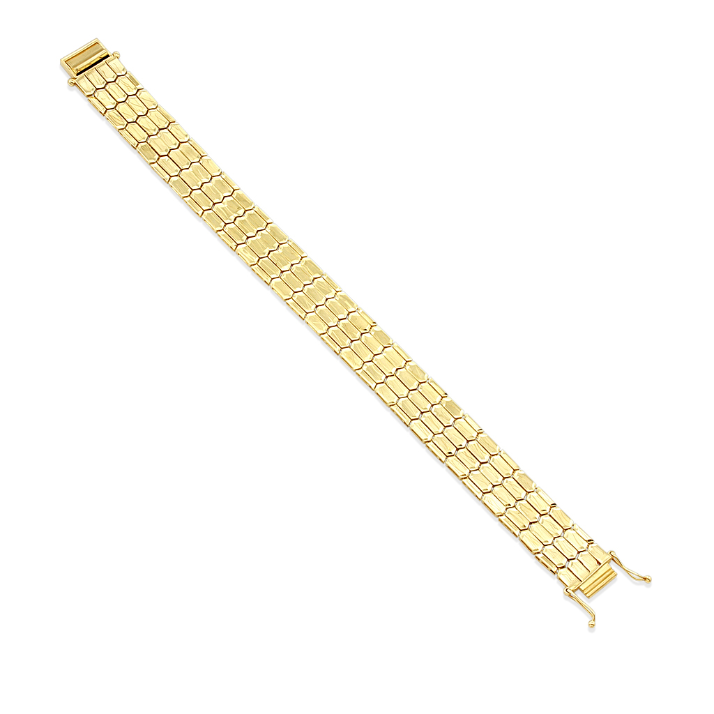 Браслет ювелирный мягкий изготовлен из желтого золота 585 пробы.