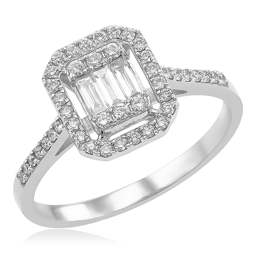 Кольцо Mostar Jewellery из белого золота 585 пробы с бриллиантами — элегантное женское ювелирное украшение, в котором багетная огранка становится выразительным акцентом. Багетные бриллианты одновременно отсылают к эстетике ар-деко и современному минимализму, подчеркивая чистые линии и геометрию дизайна.