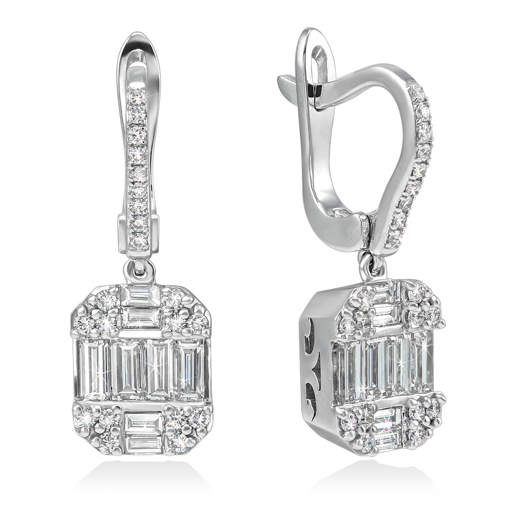 Серьги из белого золота 585 пробы с природными бриллиантами.