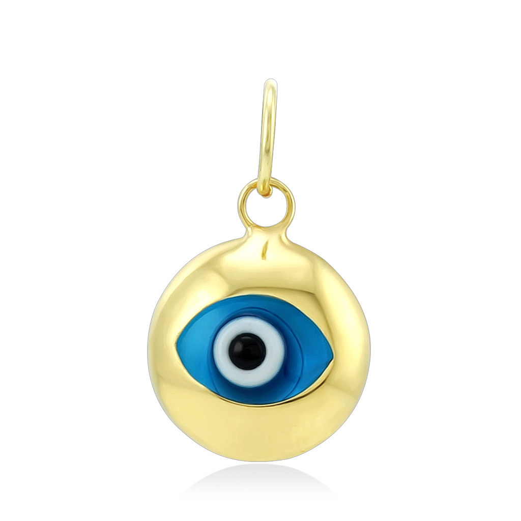 Подвеска из золота в виде цветного глаза не первый год в топе продаж. Глазок выполнен из фианита ярко-синего цвета. Считается что такое украшение имеет свойство защищать своего носителя от сглаза, порчи и плохой энергетики людей.