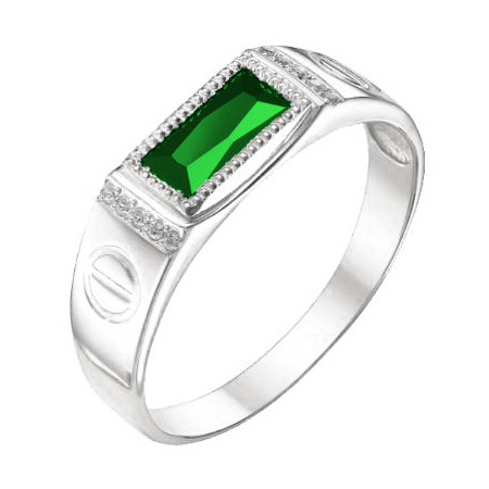 Печатка из серебра с изумрудом, артикул 159562 по цене 2390 руб. в наличии в салонах Город Золотой. Изделие имеет внешний вид "ПЕЧЦВВ", белый цвет, весом 1,82 грамм.