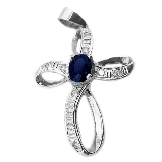 Серебряная подвеска с сапфиром, артикул 145338 по цене 5990 руб. в наличии в салонах Город Золотой. Изделие имеет внешний вид "Классика/узор", белый цвет, весом 1,8 грамм.