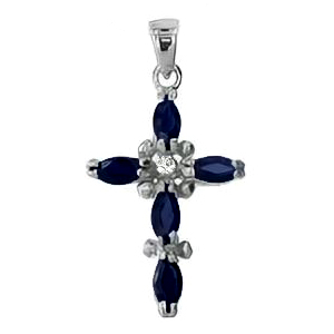 Серебряная подвеска с сапфиром, артикул 145340 по цене 5190 руб. в наличии в салонах Город Золотой. Изделие имеет внешний вид "Классика/узор", белый цвет, весом 1,9 грамм.