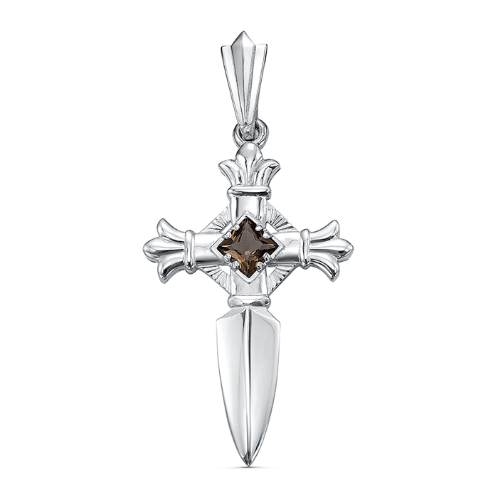 Серебряная подвеска с раух-топазом, артикул 149345 по цене 4438 руб. в наличии в салонах Город Золотой. Изделие имеет внешний вид "Классика/узор", белый цвет, весом 2,13 грамм.