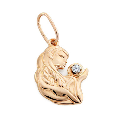 Золотая подвеска с фианитом, артикул 152577 по цене 11001 руб. в наличии в салонах Город Золотой. Изделие имеет внешний вид "Дева", красный цвет, весом 0,65 грамм.