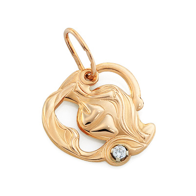 Золотая подвеска с фианитом, артикул 152576 по цене 11337 руб. в наличии в салонах Город Золотой. Изделие имеет внешний вид "Водолей", красный цвет, весом 0,67 грамм.