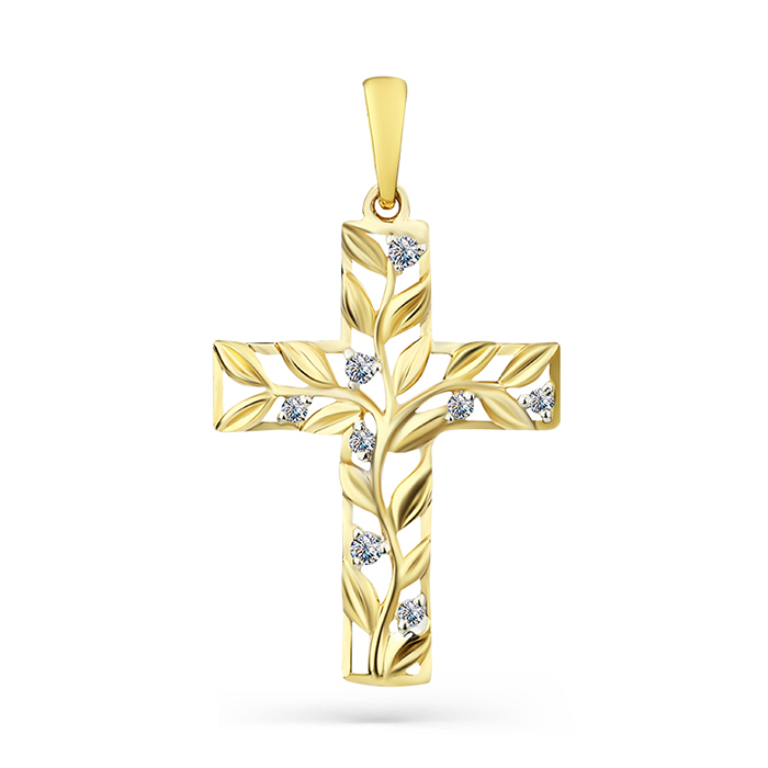 Подвеска из желтого золота с фианитом, артикул 153667 по цене 23692 руб. в наличии в салонах Город Золотой. Изделие имеет внешний вид "Классика/узор", желтый цвет, весом 1,4 грамм.