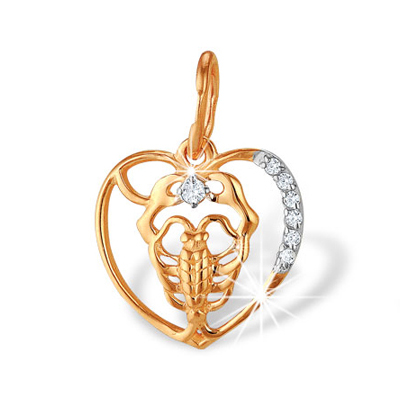 Золотая подвеска с фианитом, артикул 153705 по цене 11677 руб. в наличии в салонах Город Золотой. Изделие имеет внешний вид "Рак", красный цвет, весом 0,69 грамм.