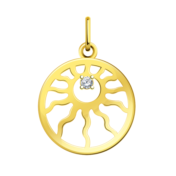 Подвеска из желтого золота с фианитом, артикул 153988 по цене 14172 руб. в наличии в салонах Город Золотой. Изделие имеет внешний вид "Классика/узор", желтый цвет, весом 1,21 грамм.