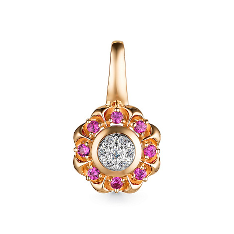 Золотая подвеска с рубином, артикул 162420 по цене 49347 руб. в наличии в салонах Город Золотой. Изделие имеет внешний вид "Классика/узор", красный цвет, весом 1,59 грамм.