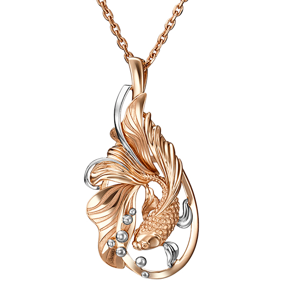 Золотая подвеска , артикул 114746 по цене 42816 руб. в наличии в салонах Город Золотой. Изделие имеет внешний вид "Рыбы", красный цвет, весом 2,53 грамм.