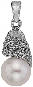 Серебряная подвеска с жемчугом, артикул 39776 по цене 1990 руб. в наличии в салонах Город Золотой. Изделие имеет внешний вид "Классика/узор", белый цвет, весом 1,4 грамм.