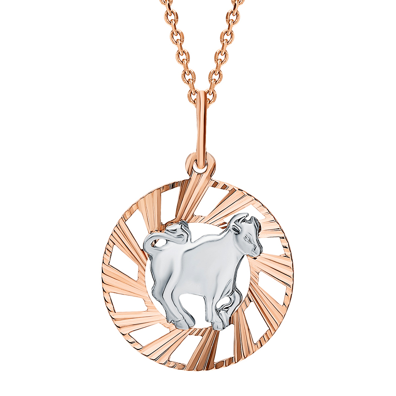 Золотая подвеска , артикул 172648 по цене 16076 руб. в наличии в салонах Город Золотой. Изделие имеет внешний вид "Телец", красный цвет, весом 0,95 грамм.